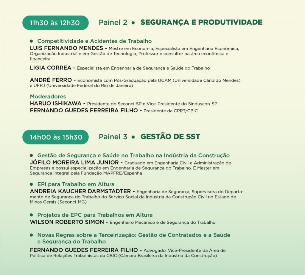 Durante o evento, será lançado o livro Segurança e Saúde na Indústria da Construção – Prevenção e Inovação e seus autores participarão de debate sobre os temas abordados.