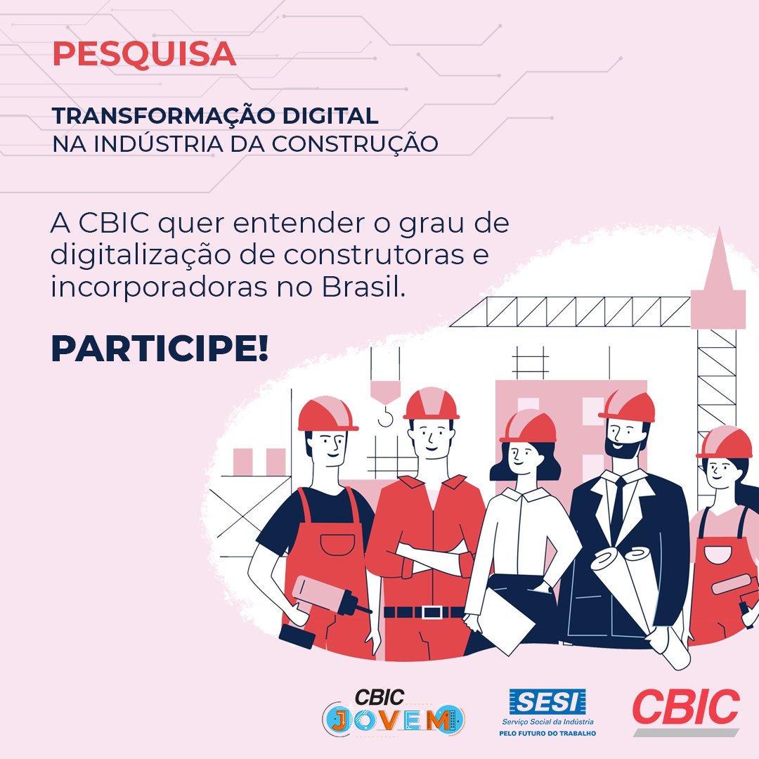 A Câmara Brasileira da Indústria da Construção (CBIC), por meio do Grupo CBIC Jovem, e com a correalização do Serviço Nacional de Aprendizagem Industrial (Senai Nacional) lançou nesta segunda-feira (5) uma pesquisa inédita sobre ‘Transformação Digital na Indústria da Construção’, que busca entender o grau de digitalização de construtoras e incorporadoras no Brasil.