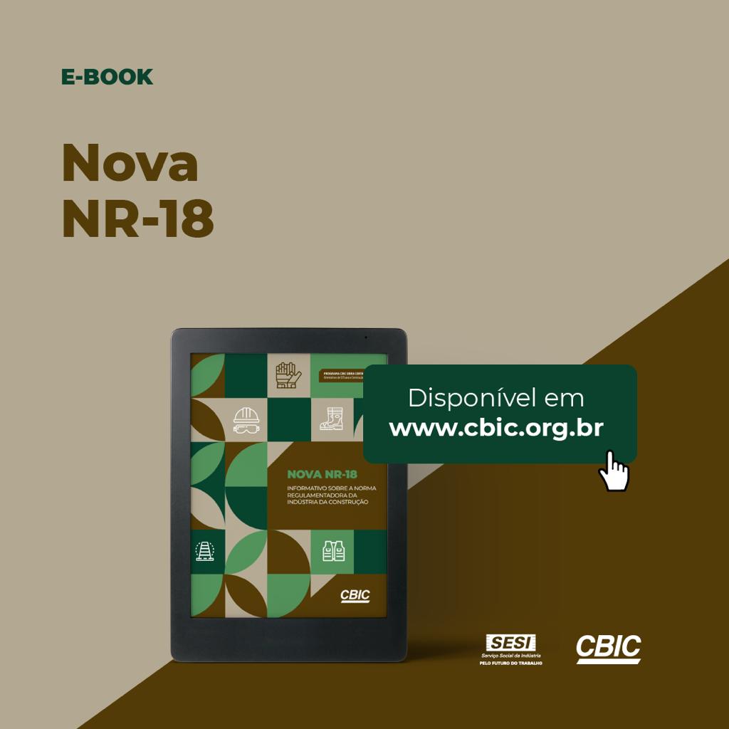 A Câmara Brasileira da Indústria da Construção (CBIC), por meio da sua Comissão de Política de Relações Trabalhistas (CPRT), lançou nesta quarta-feira (27) o e-book ‘Nova NR-18 – Informativo sobre a Norma Regulamentadora da Indústria da Construção’. Com uma mensagem clara, didática e sintética, a publicação pretende auxiliar empresários e profissionais do setor na aplicação da nova NR-18 – Condições de Segurança e Saúde no Trabalho na Indústria da Construção, prevista para entrar em vigor no dia 1º de agosto de 2021.