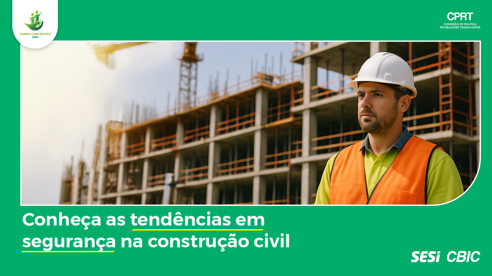 O tema tem interface com o projeto “Conhecimento, Segurança e Saúde no Trabalho na Indústria da Construção”, da Comissão de Política de Relações Trabalhistas (CPRT) da CBIC, com a correalização do Serviço Social da Indústria (Sesi).