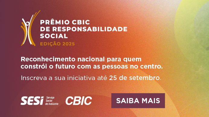 Se você, sua empresa ou entidade desenvolvem projetos de impacto social na indústria da construção e no mercado imobiliário, estão abertas, até 25 de setembro, as inscrições para a 17ª edição do Prêmio CBIC de Responsabilidade Social – Troféu Paulo Safady Simão (2025). “É tudo sobre pessoas – reconhecimento nacional para quem constrói um futuro melhor”, resume o conceito do prêmio, realizado pela Comissão de Responsabilidade Social (CRS) da Câmara Brasileira da Indústria da Construção (CBIC), em correalização com o SESI Nacional.
